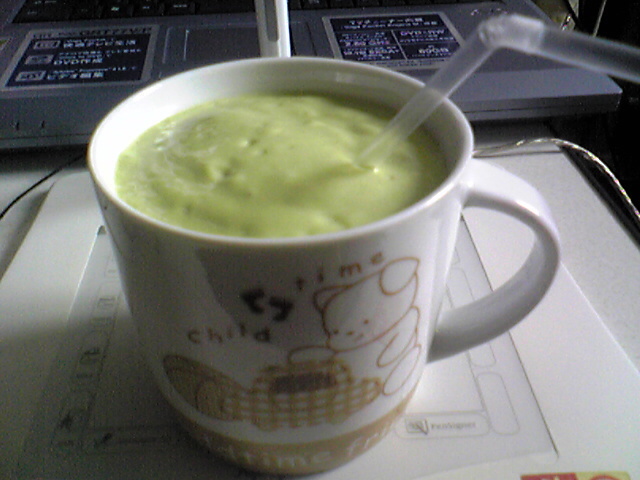 アボカドと牛乳をミキサーでガァーっと混ぜたミルクシェイクもどき。