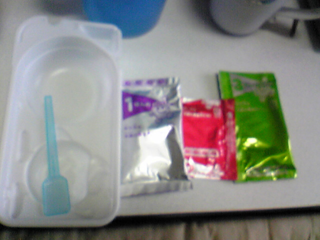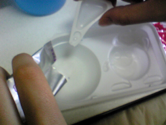 パッケージのとおり、お水と白い粉1を入れる。