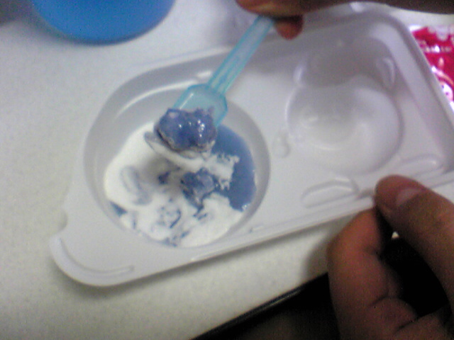 飴にどろどろした物体をつけて食べれば完成!